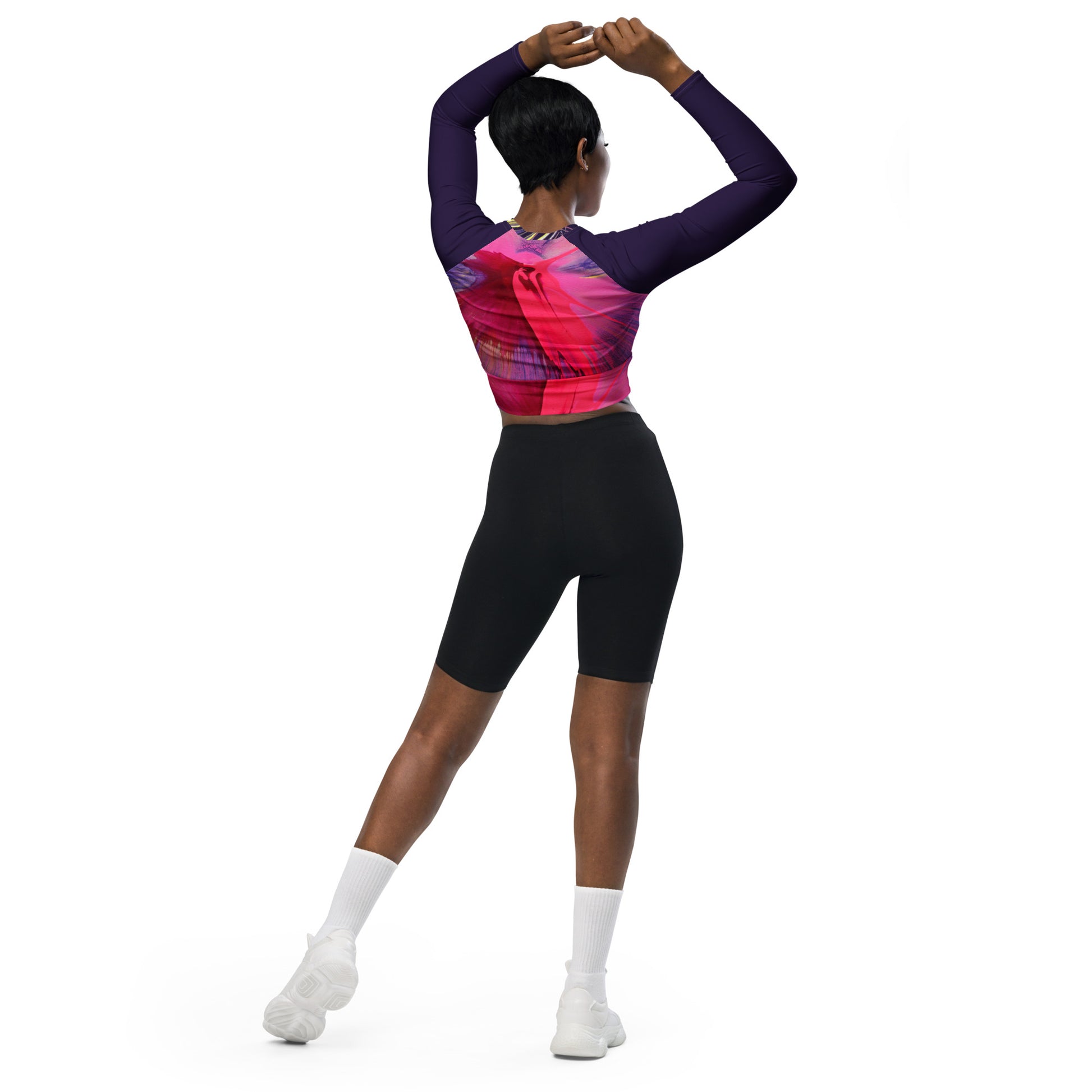 Looking for unique print on your workout cloths? Look no more! This longsleeved Crop-Top features one of Jessica's modern art designs as a high-quality all over print.